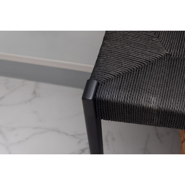 ●黒のスタイリッシュな座面とナチュラルな木目の脚が、温かさとメリハリのある空間を演出。
