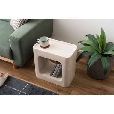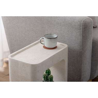 落ち着いた造形が美しいサイドテーブル。シンプルなラインでまとめたフォルムが空間に端正さを添え、控えめながら印象的な存在感をもたらします。素材感を引き立てる穏やかな色調が、インテリアに落ち着きあるリズムを生み、置く位置によって異なる雰囲気が楽しめるのも魅力です。サイドテーブルとしては もちろん、特徴的なシルエットを活かしたディスプレイとしても取り入れやすく、空間にすっきりとした アクセントを加えます。