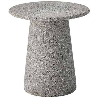 洗練された印象をもたらす上品なラウンドテーブル。本物の石のようにざらりとしたシックなテラゾー柄が、空間にやさしい奥行きを加えます。丸みのある天板と安定感のある裾広がりのベースがバランスよくまとまり、上質で心地よいバランスを演出。様々なインテリアと相性よくなじみ、ディスプレイ台としても活躍します。単体ではもちろん、サイズ違いで並べればネストテーブルとしても使用できます。