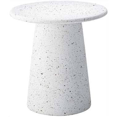 洗練された印象をもたらす上品なラウンドテーブル。本物の石のようにざらりとしたシックなテラゾー柄が、空間にやさしい奥行きを加えます。丸みのある天板と安定感のある裾広がりのベースがバランスよくまとまり、上質で心地よいバランスを演出。様々なインテリアと相性よくなじみ、ディスプレイ台としても活躍します。単体ではもちろん、サイズ違いで並べればネストテーブルとしても使用できます。