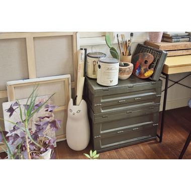 たっぷり収納できて強度も十分なオリーブドラブカラーのコンテナー