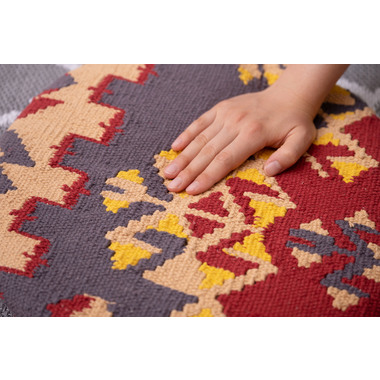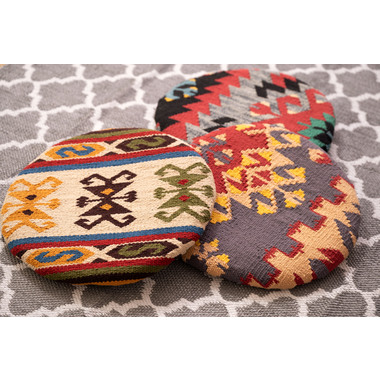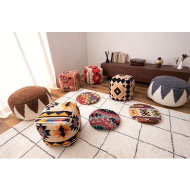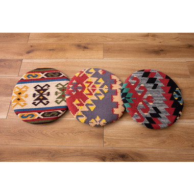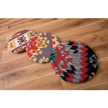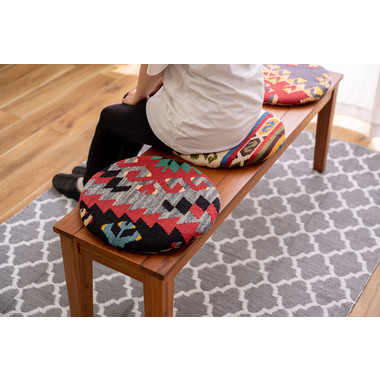 ●中近東の織物『キリム』でできたシートクッション。●温かみのあるオルテガ調模様のクッションはデザイン性のあるインテリアやシンプルなお部屋にも合わせられるワンポイントアイテムです。●座面部分にクッションがないチェアやベンチ、スツール等に合わせてクッション性とデザイン性の両方を楽しむ事ができるシートクッション。●持ち運びに便利なサイズなのでアウトドアやキャンプ等に持っていくのも良いですね。