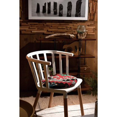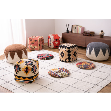●中近東の織物『キリム』でできたシートクッション。●温かみのあるオルテガ調模様のクッションはデザイン性のあるインテリアやシンプルなお部屋にも合わせられるワンポイントアイテムです。●座面部分にクッションがないチェアやベンチ、スツール等に合わせてクッション性とデザイン性の両方を楽しむ事ができるシートクッション。●持ち運びに便利なサイズなのでアウトドアやキャンプ等に持っていくのも良いですね。