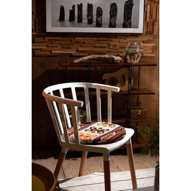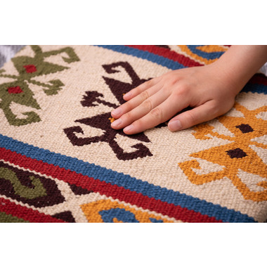 ●中近東の織物『キリム』でできたシートクッション。●温かみのあるオルテガ調模様のクッションはデザイン性のあるインテリアやシンプルなお部屋にも合わせられるワンポイントアイテムです。●座面部分にクッションがないチェアやベンチ、スツール等に合わせてクッション性とデザイン性の両方を楽しむ事ができるシートクッション。●持ち運びに便利なサイズなのでアウトドアやキャンプ等に持っていくのも良いですね。