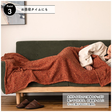 ●大判サイズなので身体もすっぽり覆ってくれて、お昼寝タイプにさっと掛けるのにも便利。