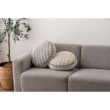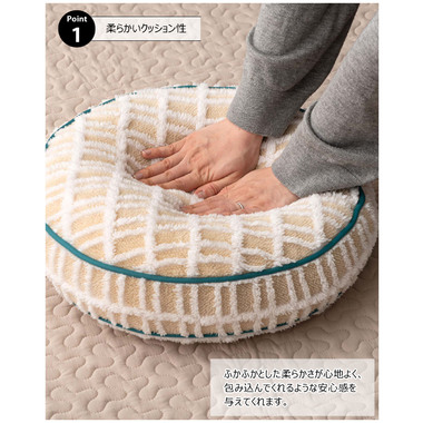 ●直径約34cmのほど良い大きさなので、ソファの背もたれ用として、読書用の腕置きクッションとしても便利。