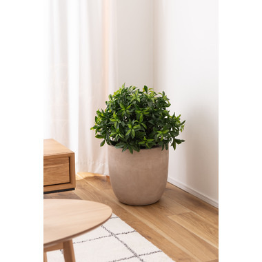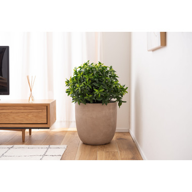 さらさらとしたマットな質感と落ち着いたトーンが魅力的なグリーンベース。水抜き用の鉢底穴がついているため、植え込みでの使用も可能です。お部屋のイメージに合わせて植物をより魅力的に魅せてくれるアイテムです。