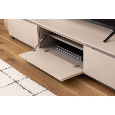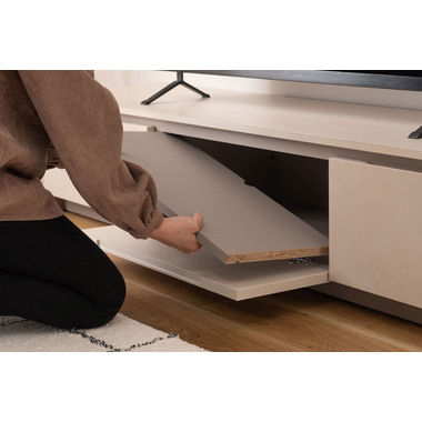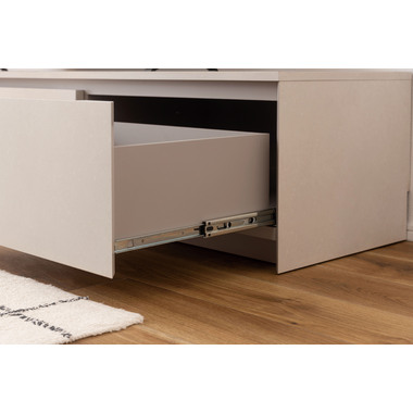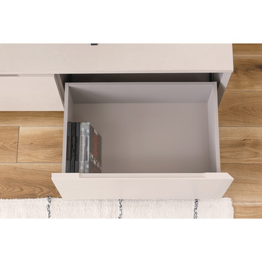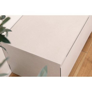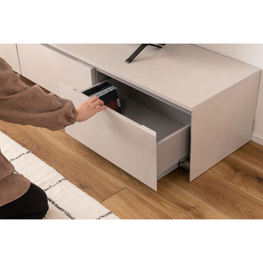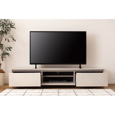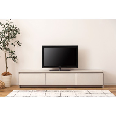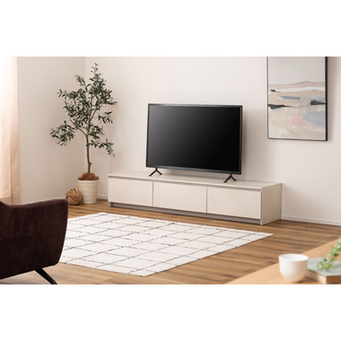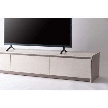 ●インテリアの主役にもなる存在感抜群のテレビボード。●収納力も、デザイン性と機能性を兼ね備えています。●こだわりが詰まった高品質の日本製。●本体の左右は引き出しタイプの収納スペース。スライドレール仕様で手前までしっかりと引き出せるので収納物の出し入れが楽にでき、引き出し奥までしっかりと収納する事ができます。●中央部分はフラップ扉タイプの収納スペース。AVデッキ等の収納に最適。●また、3段階の高さ調整が可能な棚板が付いています。●フラップ扉を開ける時のスピードを調節できるソフトダウンステー調整機能付き。●中央スペースの背面にはコード通し穴が上下に2箇所付いているので、AVデッキ類の配線処理もらくらく。●天板背面にはコードスリットが付いているので、TVのコードをスッキリ綺麗に処理できます。●側面の後ろ側にも巾木除けにもなるコードスリットが付いているので、綺麗に壁へ寄せての設置が可能です。●本体の表面部分はストーン調のメラミン化粧板仕上げ。メラミン化粧板は表面硬度が高く、対汚染性・耐摩耗性・耐熱性・耐水性に優れた特徴を持っています。