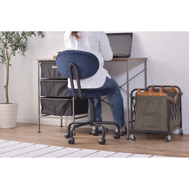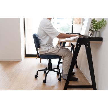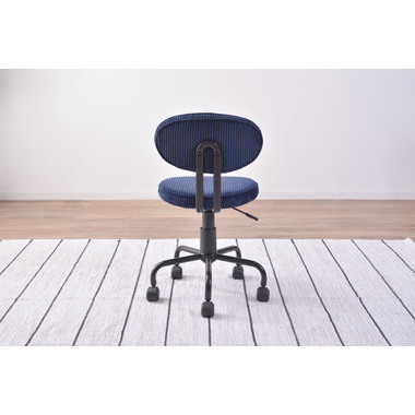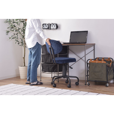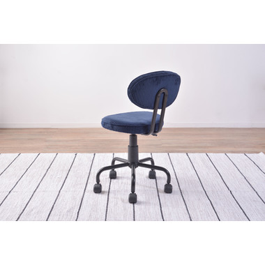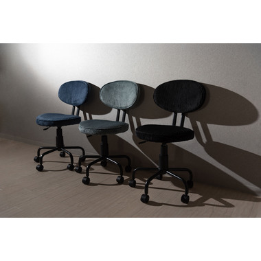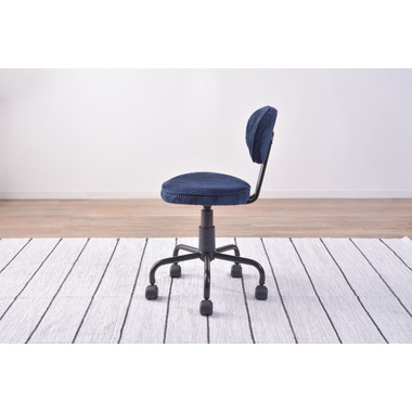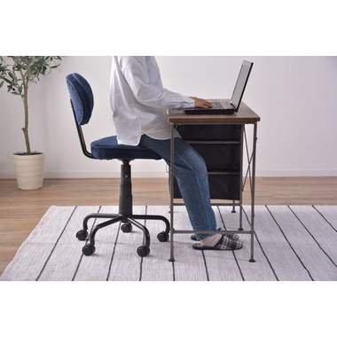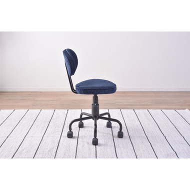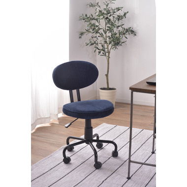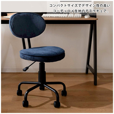 ●コンパクトサイズでデザイン性の高いおしゃれなデスクチェア。●スリムサイズなのでリビングやベッドサイドなど狭い空間での使用に便利。●スリムサイズのデスクにもピッタリフィットする使い勝手のよいデスクチェア。●ガス圧シリンダーの昇降式なので、座面下のレバーで高さ調整可能。●座面回転式でキャスター付き。●背もたれと座面にはウレタンクッション入り。●おしゃれでデザイン性のあるコーデュロイ生地を使用。●リビング等で使用する際も周りのインテリアと好相性。●シェアオフィスやデザイナーズオフィス等での使用もおススメ。