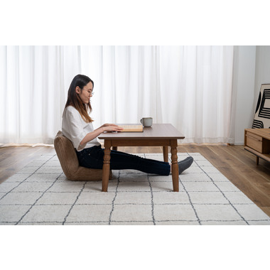 シーズン問わず使えるデザインにこだわりました。座椅子やソファと合わせるロータイプ、チェアと合わせるハイタイプの2WAY仕様