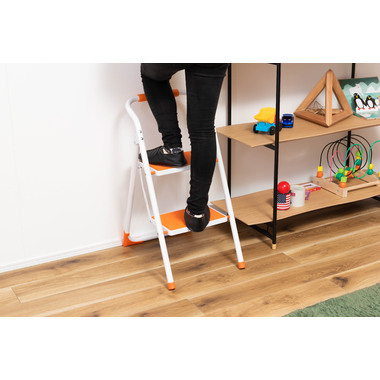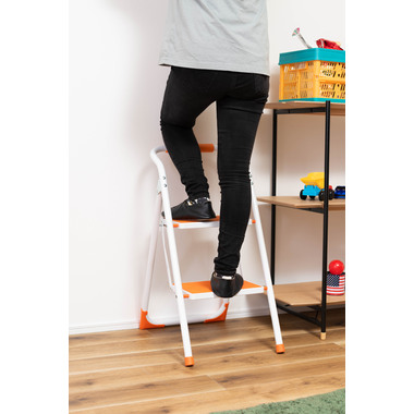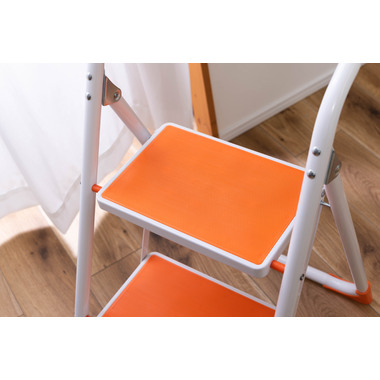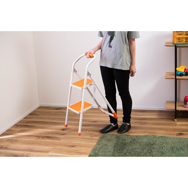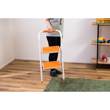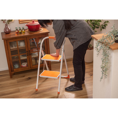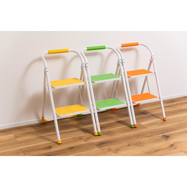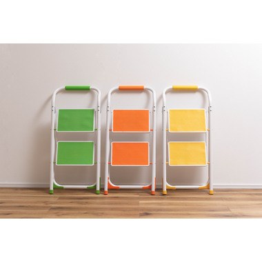 ●踏み台としてだけではなく様々な使い方ができる便利なステップ台。●ポップな3色がお部屋にアクセントを与えてくれます。●踏み台が2段付いたステップ台なので、高い場所での作業もラクラク。●フレーム上段のグリップ部分は握りやすい仕様になっているので、昇り降りも安心して行なえます。●ステップ部分は滑りにくいノンスリップ仕様。●ステップの裏面には安全ストッパー付き。●折りたたみ式なので持ち運びも簡単。●ちょっとした隙間や車の荷台など、省スペース収納が可能です。