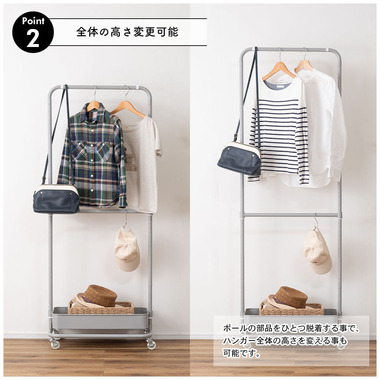 ●中間ハンガーやBOXの高さを変更出来るので、使いやすい形に変えて使用可能。