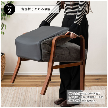 ●背もたれは折りたたみが可能で、使わない時は最小限のスペースで保管。