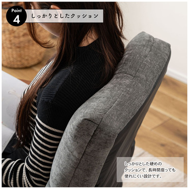 ●しっかりと硬めのクッションで、長時間座っても疲れにくい設計。