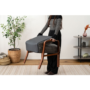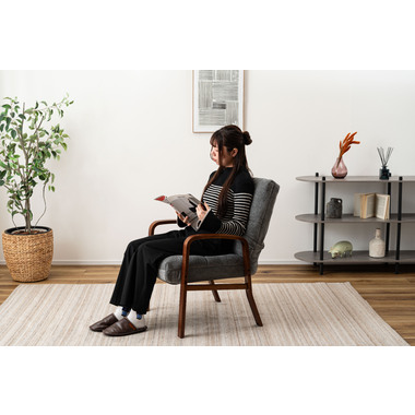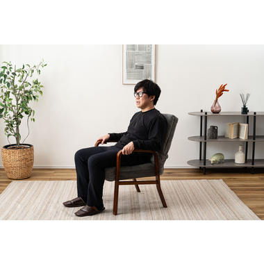 ●立ち上がりやすい肘掛の形状や持ち運びやすさなど、使う人に寄り添った設計の高座椅子。