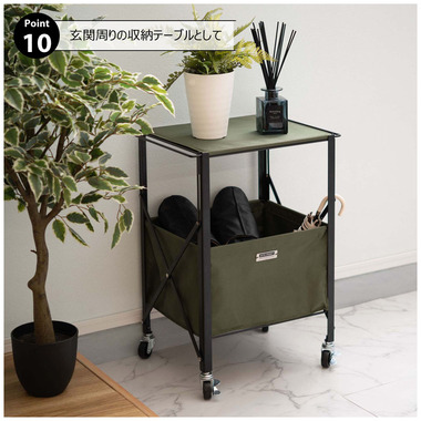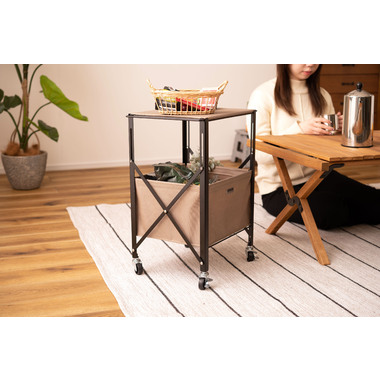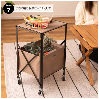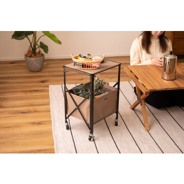 ●折りたたみができて、コンパクトに持ち運びができるテーブルワゴン。●キャスター付きなので手軽に移動ができ、ストッパーも付いているのでしっかりと固定できます。●インテリアはもちろん折り畳んで持ち運びができるので、アウトドア・キャンプ・レジャーシーンでも活躍。●天板(フタ)には取っ手が付いているので、取り外してトレーとして使用できます。●天板と収納部分の底板にはMDF板を使用しているので、しっかりと安定感のある収納が可能です。●コンパクトに折り畳むことができるので、使わない時はスッキリと隙間収納が可能。●組立動画はこちら→ https://azumaya-kk.com/movie/douga/mip-71.html