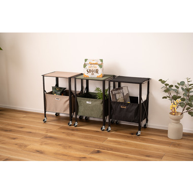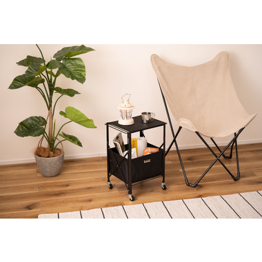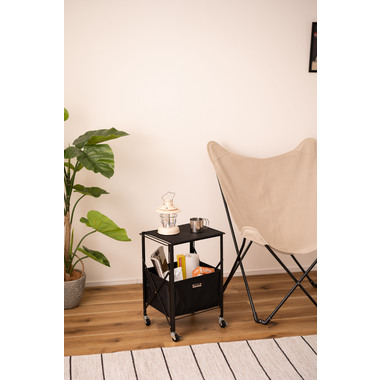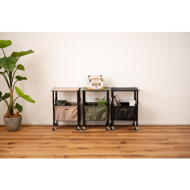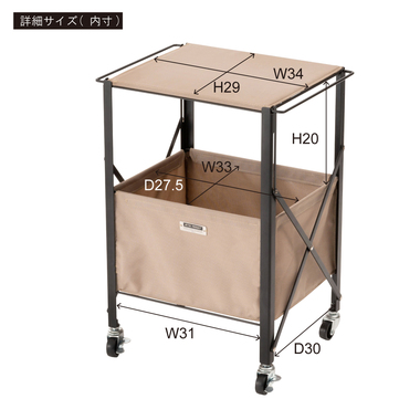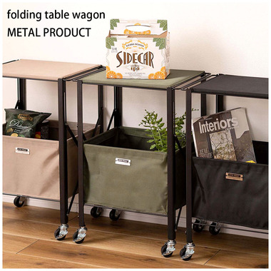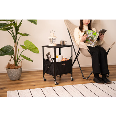 ●折りたたみができて、コンパクトに持ち運びができるテーブルワゴン。●キャスター付きなので手軽に移動ができ、ストッパーも付いているのでしっかりと固定できます。●インテリアはもちろん折り畳んで持ち運びができるので、アウトドア・キャンプ・レジャーシーンでも活躍。●天板(フタ)には取っ手が付いているので、取り外してトレーとして使用できます。●天板と収納部分の底板にはMDF板を使用しているので、しっかりと安定感のある収納が可能です。●コンパクトに折り畳むことができるので、使わない時はスッキリと隙間収納が可能。●組立動画はこちら→ https://azumaya-kk.com/movie/douga/mip-71.html