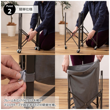 ●フレームを広げバスケットを被せマジックテープで固定するだけの簡単仕様。