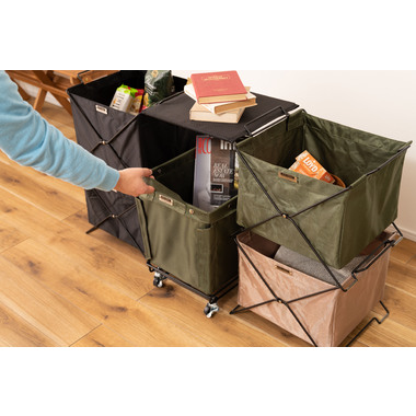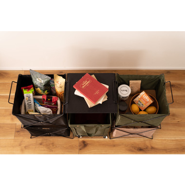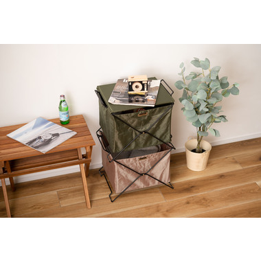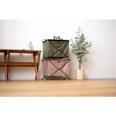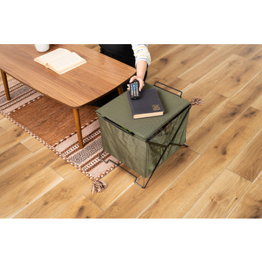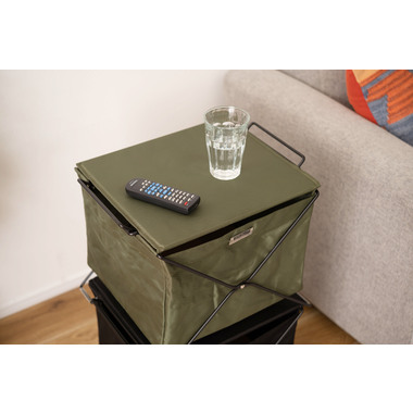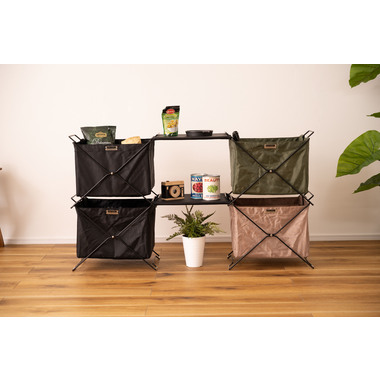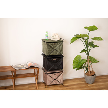 ●気軽に使えるフタ付きバスケット。●机周りやアウトドアでの小物の収納に便利。●軽くて持ち運びがしやすく、フタが平面でしっかりしているのでサイドテーブルにも使用できます。●フタは取り外してトレーとしても使用できます。●積み重ね(スタッキング)が可能なので、省スペースで効率よく収納ができます。●取っ手が付いているので持ち運びもらくらく。●ボックスとボックスの間にフタを橋渡しして収納ラックとして使うこもとできます。●フタの内部とボックスの底面にはMDF材を使用しているので、しっかり安定して収納することができます。