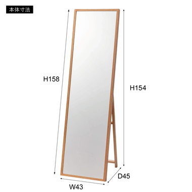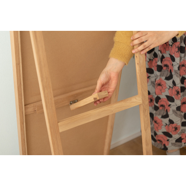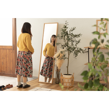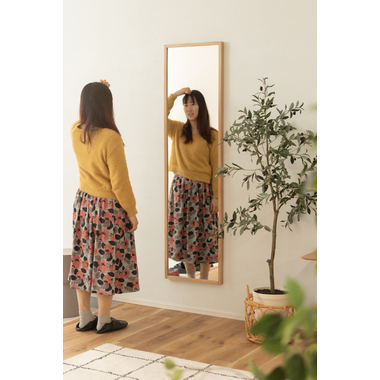 ●耐久性があり高級木材の一つとされる、美しく個性的な雰囲気を持つ天然木(オーク)の無垢材を使用したスタンドミラー。●3㎜厚の飛散防止ミラーを使用しているので、安心してお使いいただけます。●高さ164cmの大型ミラーなので全身をしっかりと映すことができます。●スタンドを外して壁掛けミラーとしても使用可能。玄関に設置して姿見として使うなど様々な場所で使えます。