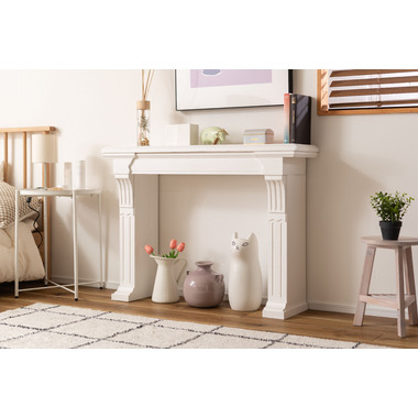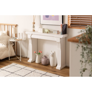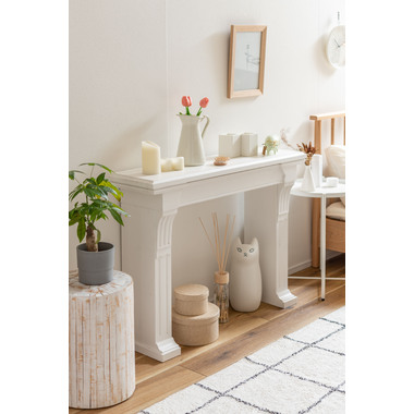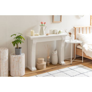 マントルピースにホワイトカラーが登場。細部までこだわった装飾がエレガントな空間を演出します。お部屋はもちろん、玄関先などに置いて生活感を感じさせないおしゃれな空間づくりとしても活躍します。流行の韓国インテリアとしてもおすすめです。 ※韓国インテリアとは、ホワイト系の色を中心としたくすんだ淡色を使い、木製の家具、ファブリックアイテム、ラタン調アイテムでコーディネートされたインテリア。