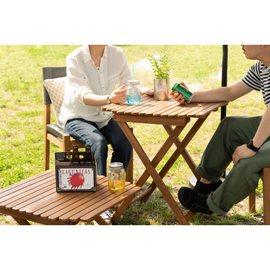 ●アウトドア・キャンプや各種イベントで大活躍の、手軽に持ち運べる折りたたみ式(フォールディング)テーブル。●特徴ある個性的な木目が人気の天然木(アカシア)材にオイル仕上げで完成させた、風合いのあるテーブル。●折りたたみ時の厚さはわずか9cmと薄くなるので、移動時や収納時もスペースをとらず便利です。●工具不要で広げる・折りたたむを簡単に行なう事ができるので使い勝手の良さもおすすめポイント。●天板を広げて、天板裏のロックをするだけですぐに使える簡単仕様。●天板のエッジ部分は丸みのあるデザインなので、安心してお使いいただけます。