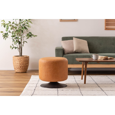 ●本革のような風合いのソフトレザーを使用した360°回転するスツール。