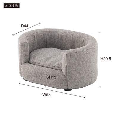 ●ペット用の小ぶりで包み込むような背もたれが特徴のソファ。●特別なペットの居場所を作ります。●落ち着いたシンプルなカラーリングとコロンと丸みを帯びた形状がお洒落。●ペットとの生活がより充実したものになる可愛いソファ。●優しいラインのオーバル型/包み込むようなオーバル型はインテリアとしても取り入れやすいデザイン。設置しやすいコンパクトサイズも魅力。●ちょうどいい高さ/ペットとのふれあいにちょうどいい高さに設計されています。床に座っても、座椅子やソファに座ってもちょうどいい高さでペットと空間を共有できます。●クッションは取り外し可能/カバーリング仕様でクッションからもカバーを取り外すことができます。●細かなディティール/座面にもフレームにもクッション性を持たせています。細かなディティールまでこだわり、作り込まれています。