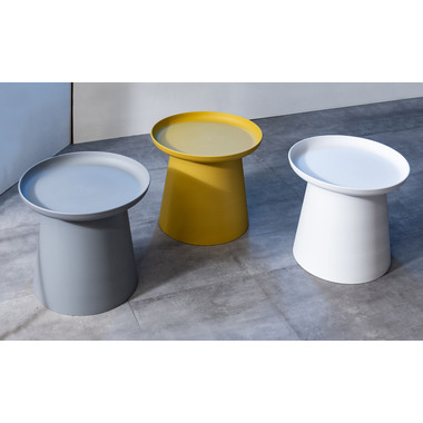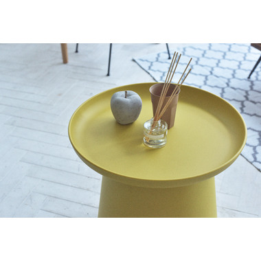 印象的なシルエットのラウンド型テーブル。