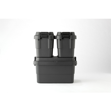 トレー型でフラット形状のフタがテーブルとしても使え、積み重ねたときのずれも防止できる仕様となっております。