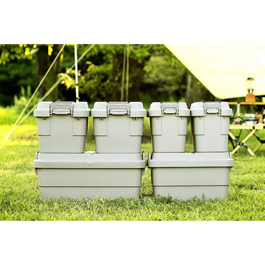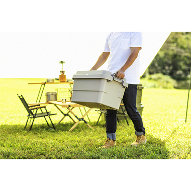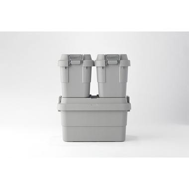 トレー型でフラット形状のフタがテーブルとしても使え、積み重ねたときのずれも防止できる仕様となっております。