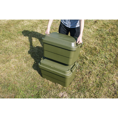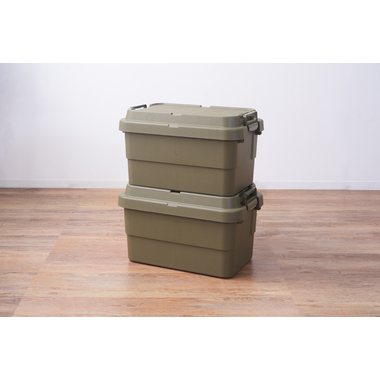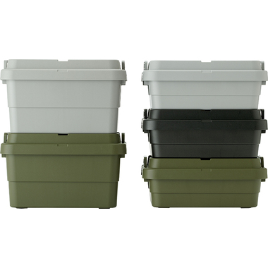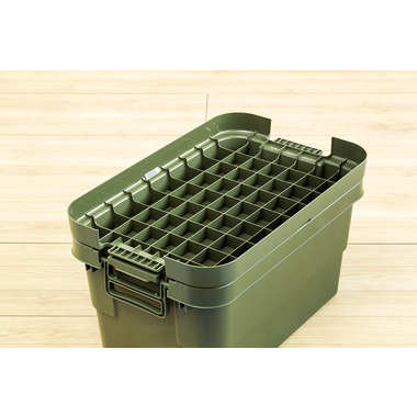 トレー型でフラット形状のフタがテーブルとしても使え、積み重ねたときのずれも防止できる仕様となっております。