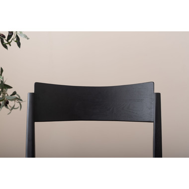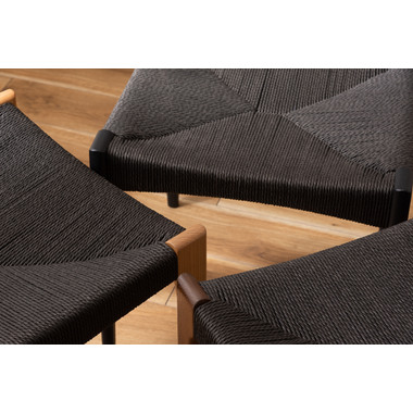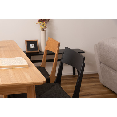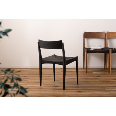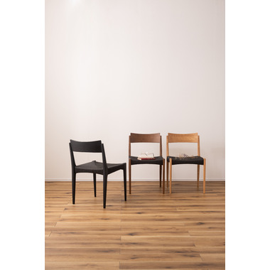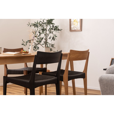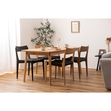 ●黒のスタイリッシュな座面とナチュラルな木目の脚が、温かさとメリハリのある空間を演出。
