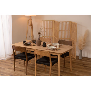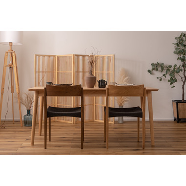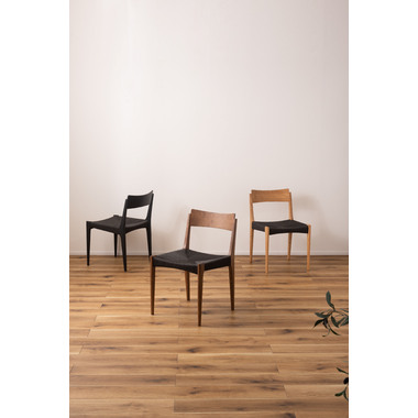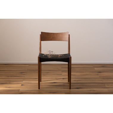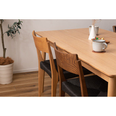 ●黒のスタイリッシュな座面とナチュラルな木目の脚が、温かさとメリハリのある空間を演出。