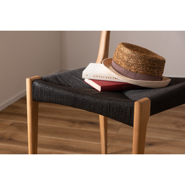 ●座面には、職人が1点1点編み込んで作り上げる『ペーパーコード』を使用。代表的な「封筒編み」と呼ばれる、座面の四辺から中央に向けて集中していくように見えるデザインを採用。