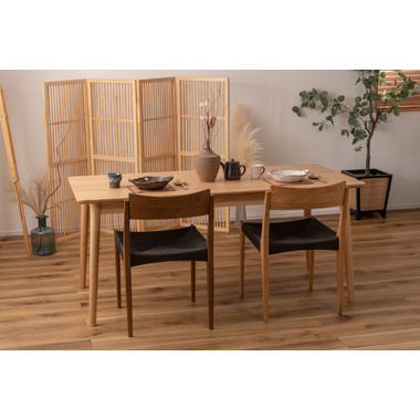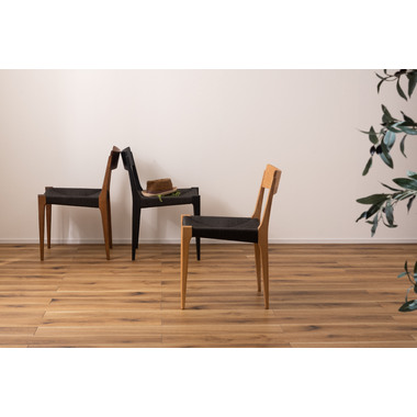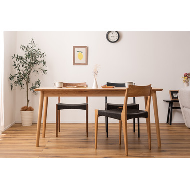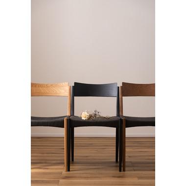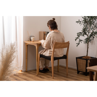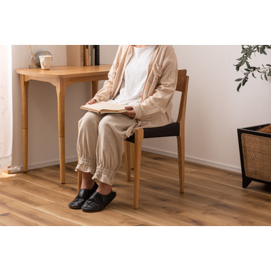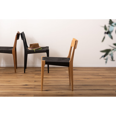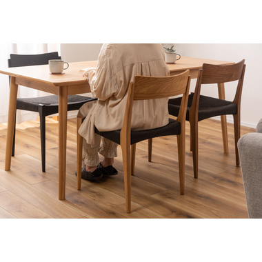 ●黒のスタイリッシュな座面とナチュラルな木目の脚が、温かさとメリハリのある空間を演出。