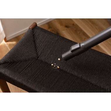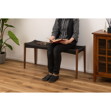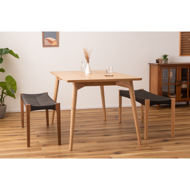 ●黒のスタイリッシュな座面とナチュラルな木目の脚が、温かさとメリハリのある空間を演出。