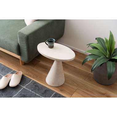 落ち着いた造形が美しいサイドテーブル。シンプルなラインでまとめたフォルムが空間に端正さを添え、控えめながら印象的な存在感をもたらします。素材感を引き立てる穏やかな色調が、インテリアに落ち着きあるリズムを生み、置く位置によって異なる雰囲気が楽しめるのも魅力です。サイドテーブルとしては もちろん、特徴的なシルエットを活かしたディスプレイとしても取り入れやすく、空間にすっきりとした アクセントを加えます。
