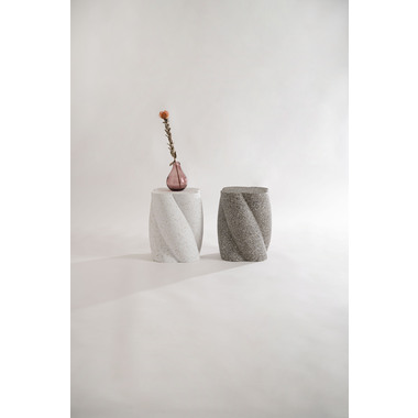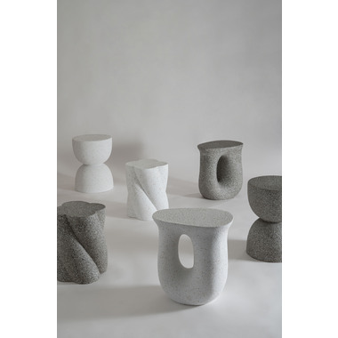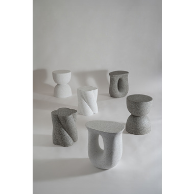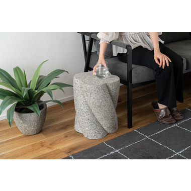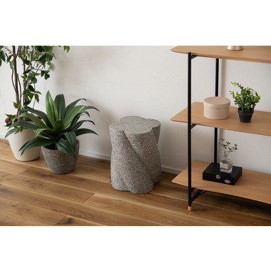 ●ざらりとした石のような質感とユニークな形が特徴のサイドテーブル。
