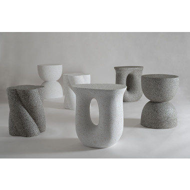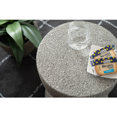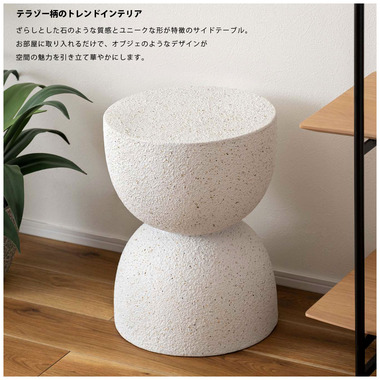 ●ざらりとした石のような質感とユニークな形が特徴のサイドテーブル。