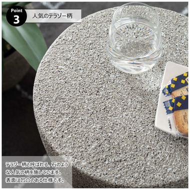 ●テラゾー柄と呼ばれる石のような人気の柄。表面は凹凸のある仕様。