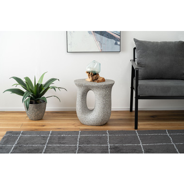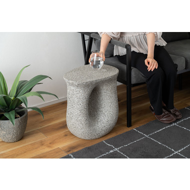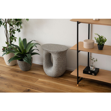 ●ざらりとした石のような質感とユニークな形が特徴のサイドテーブル。