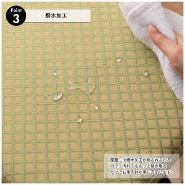 ●座面には撥水加工が施されているので、汚れてもサッと拭き取るだけでお手入れが楽に完了。
