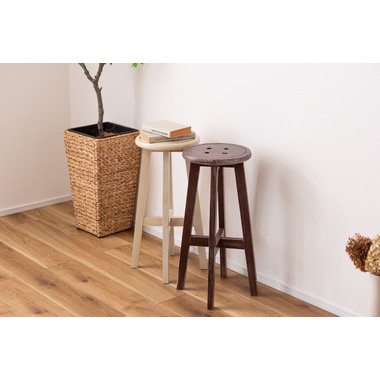 ●座面のボタンデザインが愛らしい、ヴィンテージ&シャビーシックテイストの天然木(ポプラ)ハイスツール。