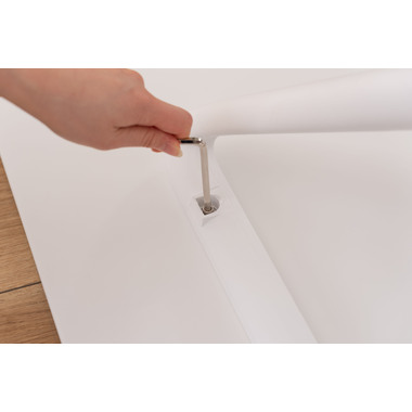 ●六角レンチ等の付属工具が全て入った組立品。天板と脚を取り付けるだけの簡単組立。