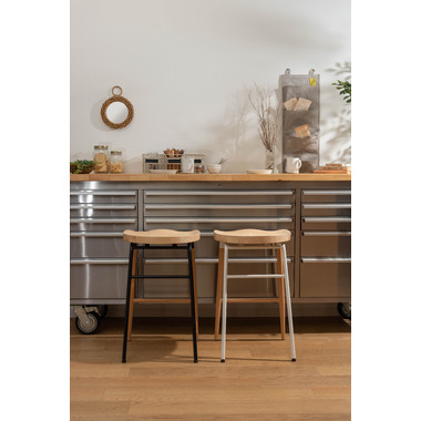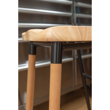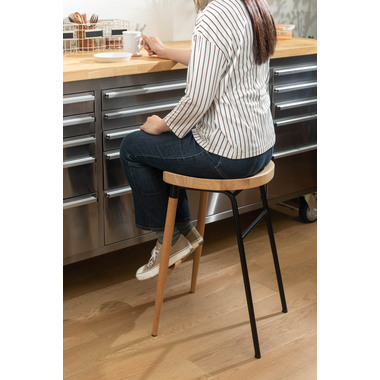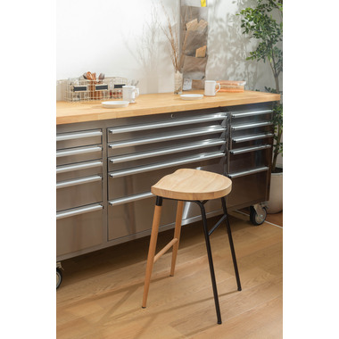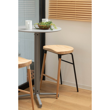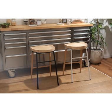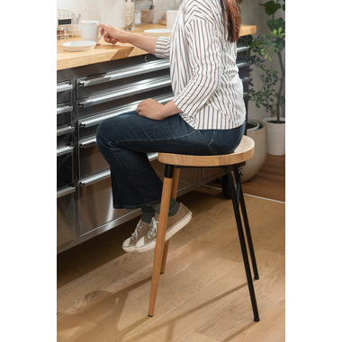 ●天然木のあたたかみ×スタイリッシュなスチール素材を組み合わせ。●おしゃれな北欧風のデザインでコンパクトな形のハイスツール“チャオ”。●置くだけでインテリアの幅が広がり、カウンターキッチンを素敵な空間に演出します。●また、座面は座りやすくするために掘り込み仕様となっており、優しい座り心地を体感することができます。●座面の高さは65cmなので、カウンターキッチンやハイタイプデスク用にピッタリのサイズ。●足置きが付いているので、安定感のある座り心地です。●異素材を組み合わせたスタイリッシュなデザインなので、高さのあるディスプレイスタンドとして小物置き等にも。●スチール脚の先にはクッション材、ウッド脚の先にはフェルトが付いているので、床への傷防止にもなり安心です。