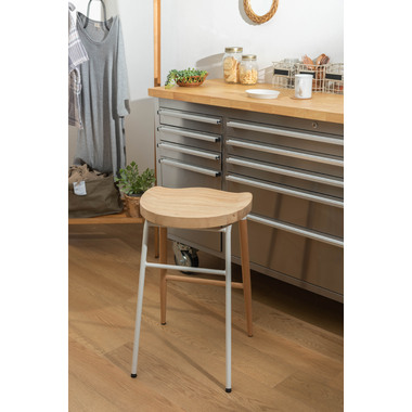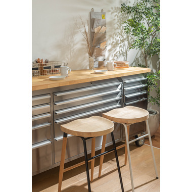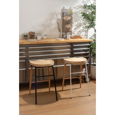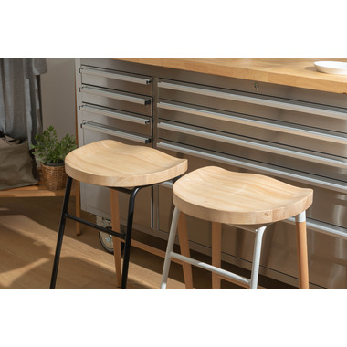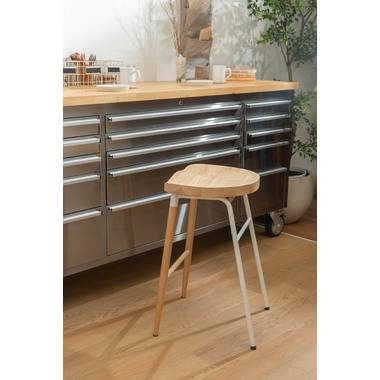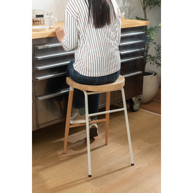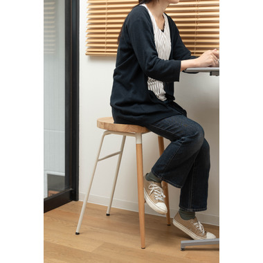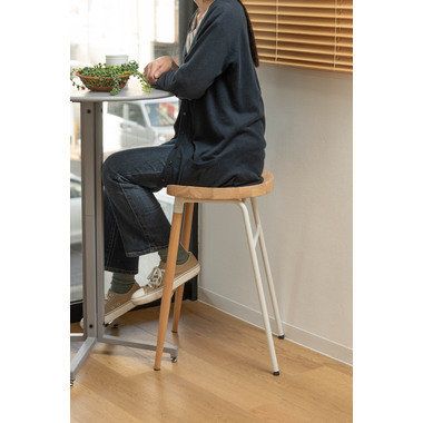 ●天然木のあたたかみ×スタイリッシュなスチール素材を組み合わせ。●おしゃれな北欧風のデザインでコンパクトな形のハイスツール“チャオ”。●置くだけでインテリアの幅が広がり、カウンターキッチンを素敵な空間に演出します。●また、座面は座りやすくするために掘り込み仕様となっており、優しい座り心地を体感することができます。●座面の高さは65cmなので、カウンターキッチンやハイタイプデスク用にピッタリのサイズ。●足置きが付いているので、安定感のある座り心地です。●異素材を組み合わせたスタイリッシュなデザインなので、高さのあるディスプレイスタンドとして小物置き等にも。●スチール脚の先にはクッション材、ウッド脚の先にはフェルトが付いているので、床への傷防止にもなり安心です。