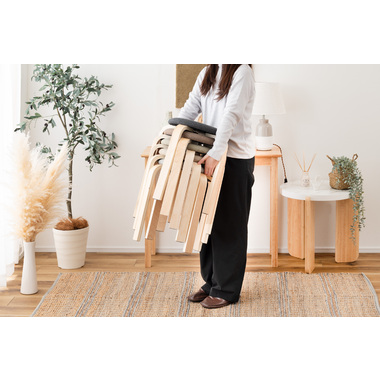 ●天然木とニュアンスカラーの生地が魅力的なスタッキングスツール。