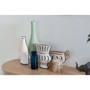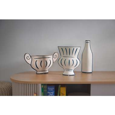 グラフィカルなラインと柔らかなフォルムが美しく調和した、上質な印象のフラワーベース。2Dアートのような平面的なデザインが、様々なインテリアに新鮮さを演出します。陶器のマットな質感がほどよい温もりを感じさせ、空間に上品な立体感をプラス。職人による手描きのラインには一つひとつに個性があり、世界にひとつだけの風合いを楽しめます。花器としてだけでなく、オブジェとしても洗練された存在感を放ちます。