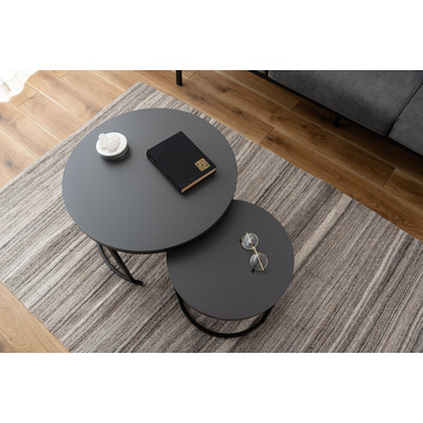 すっきりとした細身のフレームに、マットな質感の天板を組み合わせたネストテーブルです。やわらかで優しい印象の「ラウンド」と、洗練された雰囲気の「スクエア」をご用意。お部屋のスタイルや広さに合わせてレイアウトを変えられるネストテーブルは、2台を並べてゆったりとしたリビングテーブルとして使えるのはもちろん、重ねればコンパクトに収納でき、空間を広くすっきりと保つことができます。